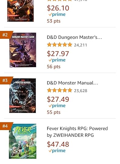 RT @rpgnn: Awesome to see Fever Knights #indie #ttrpg by @adamtotscomix and powered by @ZweihanderRPG in the top 5 of the Amazon Books - Science Fiction and Fantasy -Gaming top 100! Selling better than all but the D&D core 3!