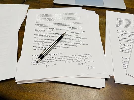 One of the most helpful things I’ve found for developing #TTRPG is to move off a computer and print everyone off on paper for edits.Not only is it nice to step away from the screen, I prefer to markup my own work via analogue. Then, I’ll back edits into the digital version.
