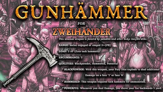 🔫🔨I see your TTRPG discourse about Fishblade and raised you GUNHÄMMER.It can be used as a two-handed weapon. It also fires tack hammers. Just because.Tip of the hat to @TheNoirEnigma's PC in Zweihander RPG.
