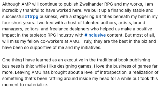 RT @ZweihanderRPG: It is with great sadness that I have to announce my final day with Andrews McMeel Publishing as its Executive Creative Director comes to an end on December 30th.Details below (relinked in next post) ⬇️