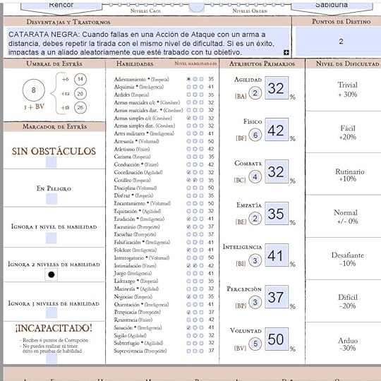 RT @Terrax: Estamos con las pruebas de la nueva ficha editable de #ZweihänderRPG que hará las delicias de la comunidad, especialmente si jugáis online. Como podéis ver, la ficha programada por @igarol calcula los niveles de habilidad, tus valores de umbral, tu marcador de estrés y mucho más.