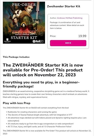 For those who prefer to play using VTT, the Zweihander ttrpg Starter Kit is coming to @roll20app on November 22nd!