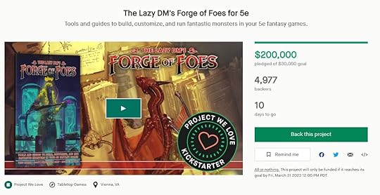 RT @Alphastream: Forge of Foes just hit $200k! Seriously, thank you folks! This is a huge help towards both this project and our future endeavors! https://www.kickstarter.com/projects/slyflourish/the-lazy-dms-forge-of-foes-for-5e?ref=8ir5oj