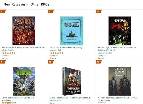 Blackbirds RPGOZ: A Fantasy Role-Playing SettingEternal Night of LockwoodTomb of HeroesZweihander Fantasy Horror: Starter KitA Hero's Journey'tis a good day for TTRPGs on Amazon!