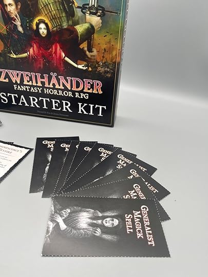 One of the many things I ❤️ about our upcoming Zweihander RPG Starter Kit: lots & lots of handouts!Here’s a look at our tarot card-sized spell cards. There are over 20 inside, along with 30 injury cards & clue cards.