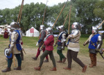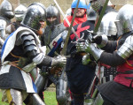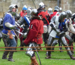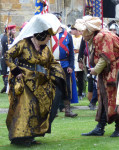 This year I managed to see rather more of the battle than last (when I’m afraid I cowered at my stall inside the marquee rather than brave the blazing heat outside – unlike the staunch warriors who took the field in full harness). I also stayed to see the final defeat of the Lancastrians in the grounds of the Abbey, followed by the infamous beheadings – much cheered by the townspeople, all of course loyal to good King Edward and his gallant young brother, Richard of Gloucester.