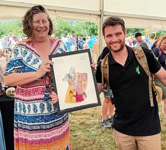 Marion Moffatt and Sir Thomas of LoxwoodWhen it came to designing a cover for the new anthology, it was perhaps no surprise that I thought about using this striking image, which has caught customers’ eyes on every stall I’ve had since Loxwood. While there is no record of King Richard himself ever jousting (although equally, there’s no evidence that he never did), the image seemed to catch the essence of the book’s title – itself taken from the Crowland Chronicler’s description of the king. Add to that the fact that one of the stories in the collection (‘The Heads of Such Great Men’, by Kit Mareska) itself concerns a joust, it was a no-brainer for me – and fortunately the other contributors agreed.