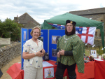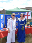 The weather couldn’t have been better – though I was very thankful for the shade of the gazebo that Marla Skidmore very kindly allowed me to share. Somehow I managed to keep my medieval ‘page’ costume on the whole time despite the searing heat – though I had to abandon the hose rather quickly and resort to the not very authentic unclad legs. Apologies to anyone who witnessed that! Particularly of course His Grace the King, who deigned to visit my stall, and was as ever very diplomatic in not mentioning it and in fact carefully looking away – though he would probably have been entitled to haul me off to be executed for the indiscretion!