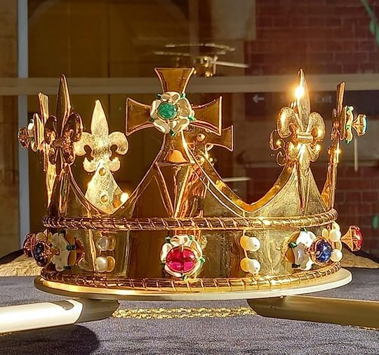 The crown made to accompany King Richard’s reinterment at the behest of Dr John Ashdown Hill. Photo copyright King Richard III Visitor Centre.Young Matthew Wansford, once a page to Duke Richard of Gloucester, now King Richard, begs a day’s holiday from his new master in order to join the crowds in the street celebrating the new king and queen: