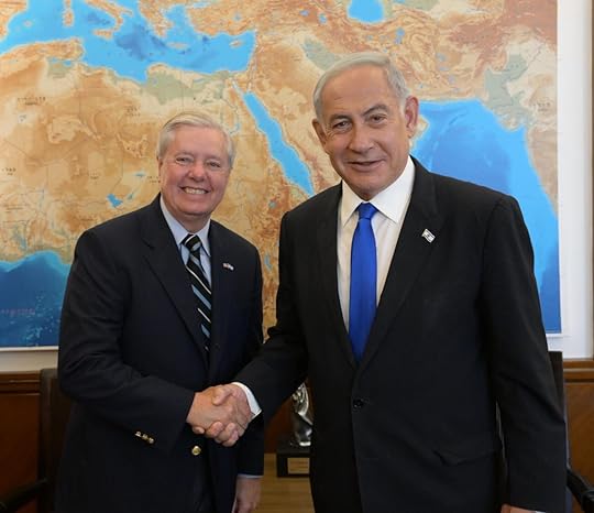 נפגשתי היום עם הסנטור האמריקני לינדזי גרהאם. אנו שואפים לנירמול היחסים ולשלום עם ערב הסעודית. אנחנו רואים את זה כצעד גדול לכיוון סיום הסכסוך הערבי-ישראלי. ברוך הבא לישראל, ידידי לינדזי גרהאם!