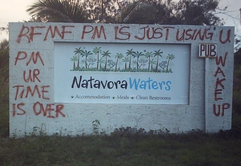 A gallery of the offending graffiti is available here. It is, of course, ridiculous to think that political agitation of this mild, non-violent nature could be punished as severely as the actual execution of a violent coup. But as this interview regarding another pending case makes clear, Fiji's sedition laws are designed with exactly this sort of persecution in mind:
