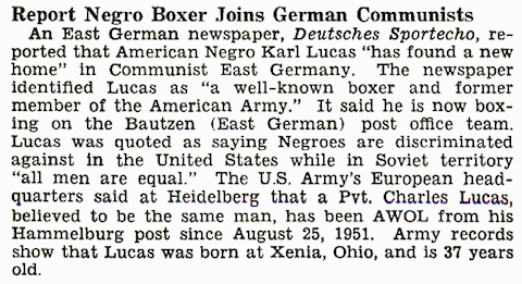 One of the first cases I came across in this quest was that of Charles Lucas, aka Karl Lucas, an American soldier who reinvented himself as an East German Everyman in the early 1950s. His story is told in-depth here, an account that includes this interesting tidbit culled from the Stasi's secret files: