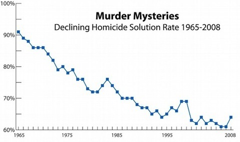 There is great wisdom to be gleaned from studying anomalies, which is why the El Paso Police Department's homicide unit deserves our attention. It is the rare squad that appears to be solving an ever-greater percentage of its cases, thereby defying the nationwide trend illustrated in the graph above: