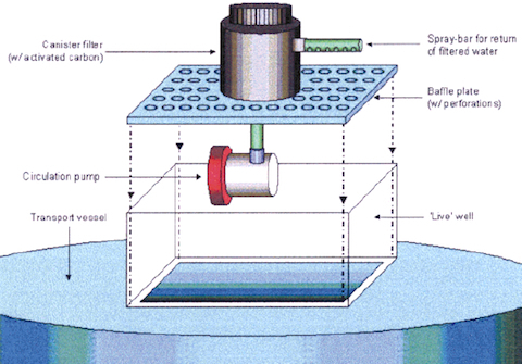 I surely can't be the only aquarium patron who, when confronted with a vast array of exotic sealife sealed behind glass, can only wonder how the largest of those captive animals was transported to their new homes. Sharks, of course, present special challenges, given their size and potential ferocity. And no shark species has proven more problematic for aquariums than the hammerhead, a delicate creature that has historically demonstrated itself to be quite averse to being cooped up for hours on end. Notes on the Long-term Transport of the Scalloped Hammerhead Shark (Sphyrna lewini ) (PDF) provides some history of the evolution of the requisite techniques, including the design of the containment unit pictured above. The latest results, though better than in years past, are unlikely to please those who object to keeping sharks in captivity: