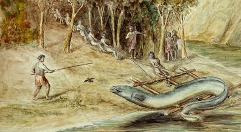 By the way, yes, I realize that I cheated with the image above—lampreys are not eels. I just wanted a nice excuse to point your toward this fantastic trove of materials related to Maori eeling techniques and technologies. I found the eel spears to be particularly impressive.