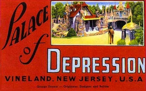 My personal favorite has long been Wisconsin's House on the Rock, which grew out of a frustrated architect's desire to one-up Frank Lloyd Wright. But it sounds as if I would have been an even greater sucker for New Jersey's aptly named Palace of Depression, built during the Great Depression by George Daynor, a man who could charitably be described as being one can short of a six-pack. Daynor maintained a psychologically even keel during the Palace's early years, as the challenge of building and maintaining the place acted as a sort of Colzapine. But he lost the plot during the 1950s, and his desperate attempt to maintain the Palace's fame led to his bizarre downfall: