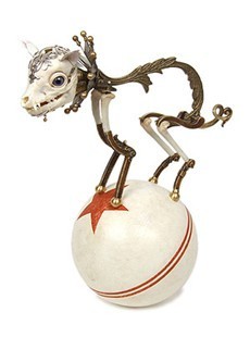 Despite our general abhorrence of slasher flicks and Eli Roth-style "torture porn," we do have a soft spot for macabre statues. Hyungkoo Lee's series of cartoon skeletons, for example, still ranks as one of the finest exhibits we've ever seen in New York. And we're similarly enthralled by the work of Jessica Joslin, who incorporates animal bones and skulls into her steampunk-inflected works.