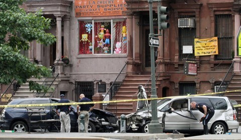 Those of you who follow Microkhan's microblog know that the situation near headquarters was beyond hectic yesterday—not just because we had the kid on our hands, but also due to our physical proximity to a senseless tragedy. A police pursuit of two robbery suspects ended with a massive collision about 50 feet from our front door, and the death of an elderly nun. As of this writing, the suspects have yet to be caught, though not for lack of beefy detectives peering into our basement for hours ...