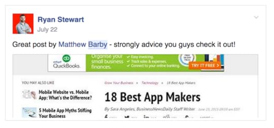“You only talk about yourself. Think about that guy at the party who rambles on and on about himself and never asks about you. Don’t be that guy. You can use the 80/20 rule to make sure you’re achieving a good balance. Only post promotional items 20 percent of the time. The rest of your content should be purely beneficial to the user.”