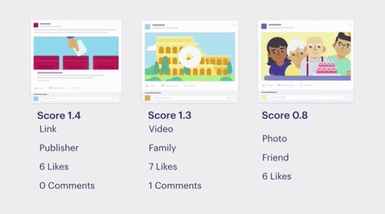 Some users assume that Facebook posts display chronologically. That is not true. Facebook’s algorithm takes into account three specific factors when determining what to prioritize in your feed: