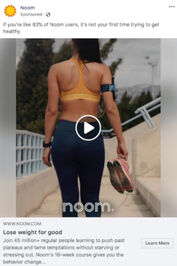 Noom pairs its rhetorical strategies with branding by featuring a woman wearing an orange sports bra that matches the orange ring in Noom’s logo.
