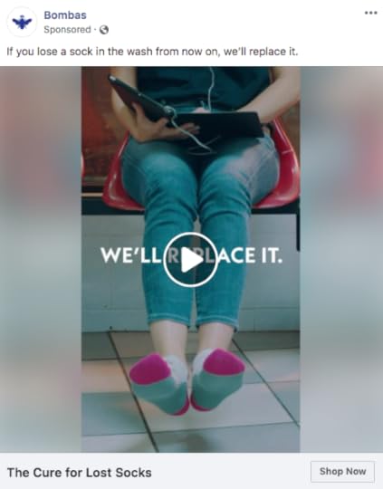 Bombas uses a common dilemma to hook its audience in this ad: a lost sock. Because nearly everyone has lost a sock in the laundry, Bombas offers to replace the socks customers lose. It even uses the headline “The Cure for Lost Socks” to appeal to those who hate losing socks.