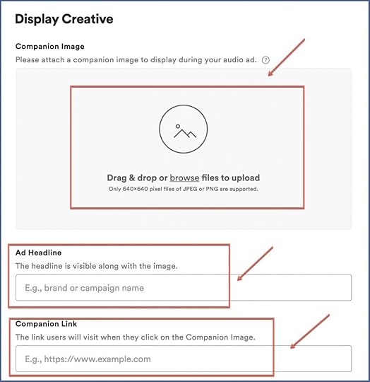 Step 5: Upload an image to display on listeners’ screens while your ad plays. Also, enter a headline for your ad and a companion link, which will direct users to where you want them to go after clicking the ad.