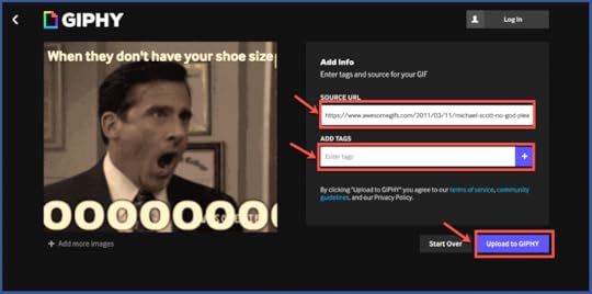 Step 4: Enter tags and a source URL for your GIF, then select “Upload to GIPHY.”