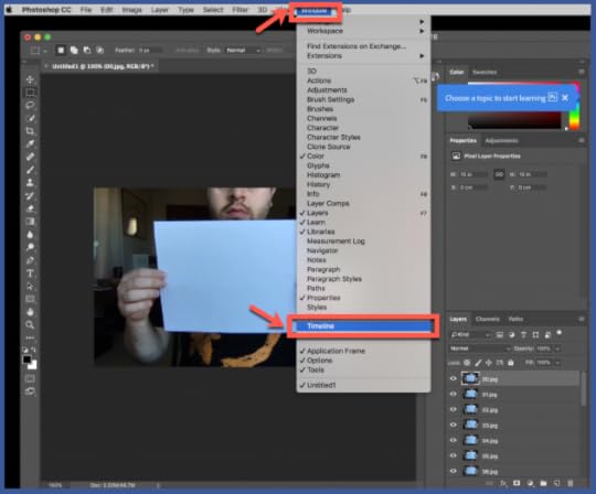 Step 4: At the top navigation menu, go to “Window” and scroll down to “Timeline.”