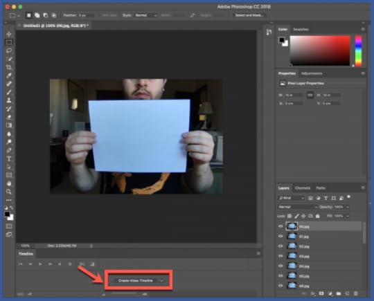 Step 5: Click “Create Video Timeline” when it appears at the bottom of your screen. Change it to “Create Frame Animation.”