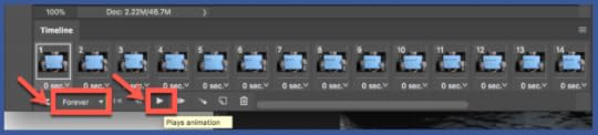 Step 8: The photos you uploaded will appear in the Timeline panel. Drag to reorder them in the order you want them to play. Press the triangular Play button to preview your GIF, making sure “Forever” is selected in the dropdown menu to the left of the Play controls.