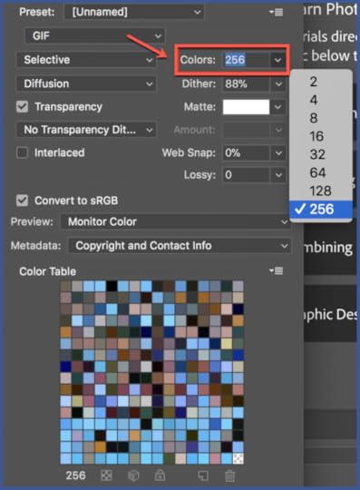 Step 11: In the same export settings menu box, set your “Colors” to 256.