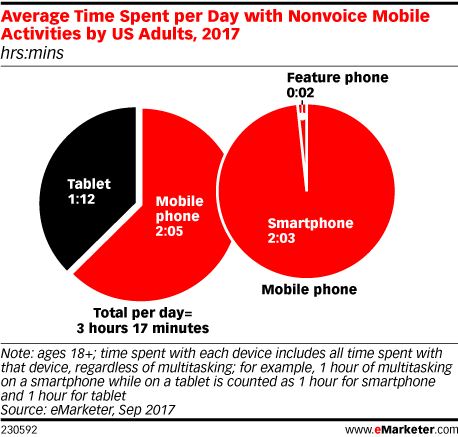 We spent an average of 1 hour, 12 minutes on tablets in 2017, according to eMarketer. Compare that to the 2 hours, 3 minutes spent on smartphones, and you see that users still spend a good bit of time on tablet devices.