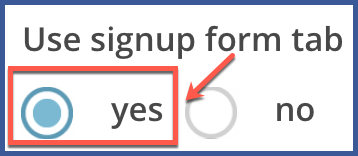 Step 5: Select “Yes” under the “Use signup form” tab.