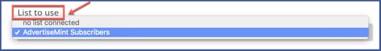 Step 4: Choose which list you want to add your Facebook subscribers to from the “List to use” dropdown.