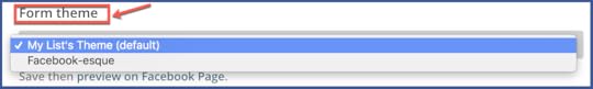 Step 6: In the “Form theme” dropdown, select which style you want to use for your form. You can either choose your MailChimp theme or the Facebook-esque theme, which matches Facebook’s look and design.