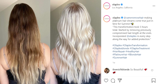 Olaplex’s Winning Social Media Advertising StrategySimilar to The Pink Stuff, Olaplex has gained internet fame by tapping into a dedicated audience. At-home beauty and hair care tutorials have existed on Youtube, Instagram, and other platforms for the better part of a decade. Bloggers and stylists have featured Olaplex products in their content since 2016. The company developed a direct-to-consumer marketing strategy focusing on these influencers and highlighting posts and videos of satisfied buyers.