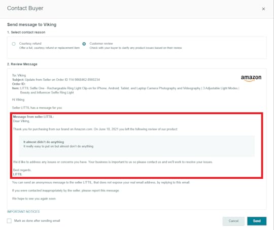 This leaves brands in a confusing middle ground when it comes to using the “Contact Buyer” feature. Secondly, this option could easily change buyer-seller relationships on the platform or perhaps even create a toxic environment. Brands could be incentivized to lose out on profits to please upset customers, and opportunistic individuals could become incentivized to leave negative reviews in return.