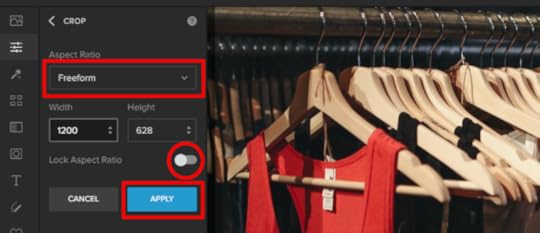 To run a News Feed ad, you’ll have to crop the photo to 1200 x 628 pixels. To do this, choose Freeform (from the drop-down options under Aspect Ratio), disable Lock Aspect Ratio, and then input the width and height as shown below.
