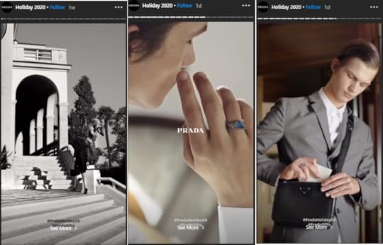Luxury fashion brand Prada (@prada) doesn’t always post Stories on their global Instagram account, but when they do, they’re bound to be mysterious and enticing. In fact, when Prada announced its 2020 Holiday collection, it set the bar high for all other fashion houses’ IG campaigns.