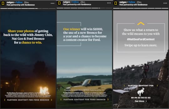 The magazine has a long history of partnering with brands that share its values. The print version of the publication, for example, used to carry ads for cameras and all-terrain vehicles. This tradition of collaborating with like-minded brands carries over to its IG Stories campaigns.