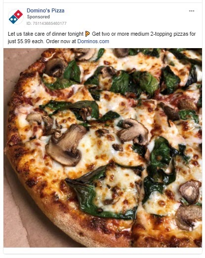 Here is a great example of a relevant image. Domino’s uses a close-up of pizza to promote its $5.99 deal.