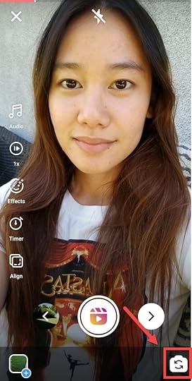 Here, you can flip the camera from front-facing to back-facing or vice versa by clicking the camera button on the lower-right corner of your screen.