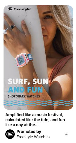 Tell a story through a video Pin. There are various formats and lengths available to choose from. Kohl’s ran a video ad with tips for outdoor entertainment: