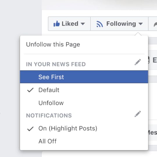 Followers can prioritize your content on their feeds by clicking the “Following” button under your page’s cover photo and clicking “See First.”