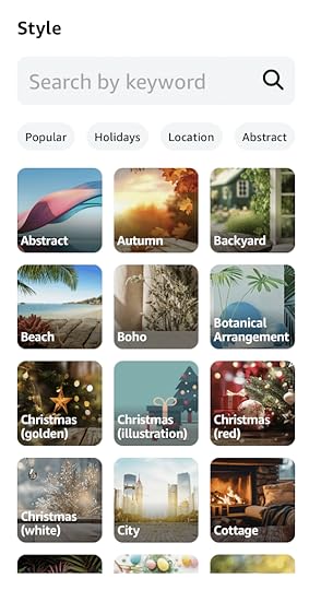 AbstractAutumnBackyardBeachBohoBotanical ArrangementChristmas (Golden)Christmas (Boho)Christmas (Red)Christmas (White)CityCottageand more