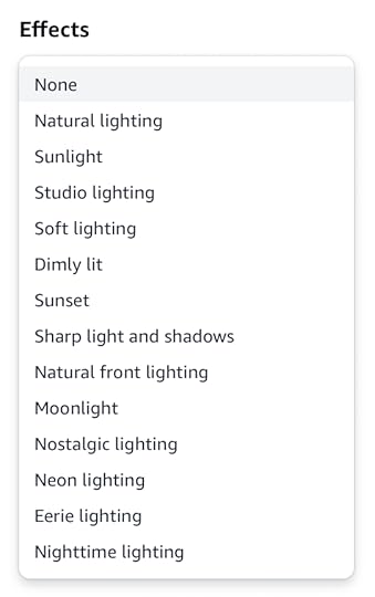 NoneNatural lightingSunlightStudio lightingDimly litSunsetSharp light and shadowsNatural front lightingMoonlightNostalgic lightingNeon lightingEerie lightingNighttime lighting
