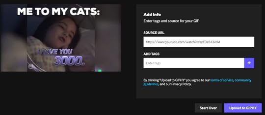 The GIF will upload to the site’s database for public use. You must enter relevant tags to help users find your GIF in the site.