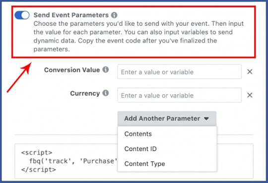 When manually setting up your Facebook Pixel, you can toggle parameters for your event.