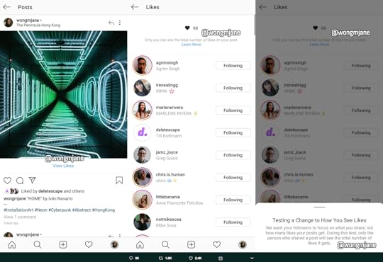 In Wong’s screenshot of the test, her number of likes are missing. In its stead is this message: “Liked by deletescape and others.” Only the user who published the image, Wong, can see the number of likes her post received. That number is not visible to her followers.